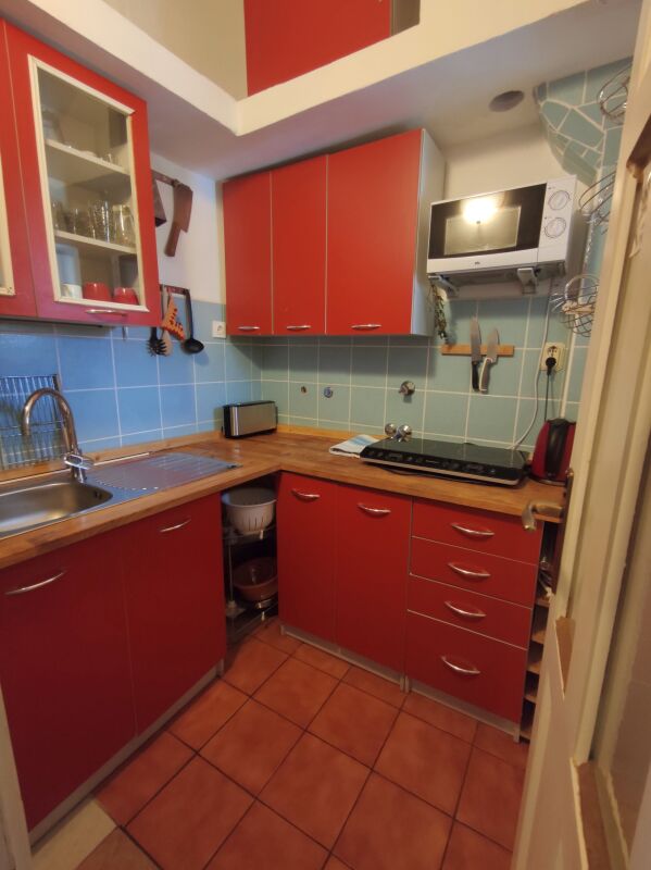Ausstattung Küche: Kühl-/Gefrierkombi, Küche mit Kochgelegenheit (Doppelinduktions- Kochplatten),kleine Spülmaschine, ausreichend Teller, Tassen, Besteck, Gläser, Mikrowelle, Kaffeemaschine, Wasserkocher, Toaster